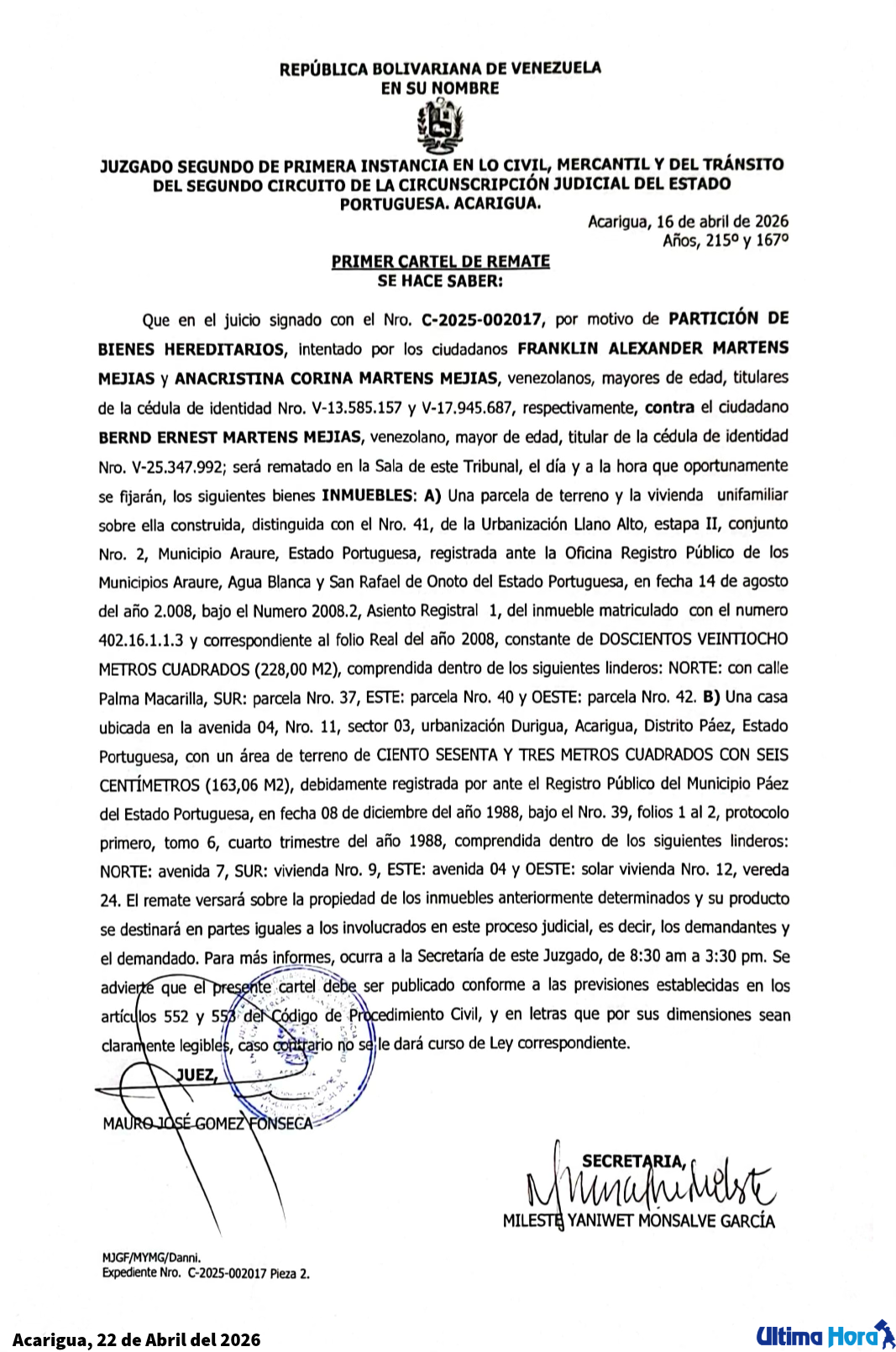 En Caracas a los 15 días del mes de septiembre de 2022.