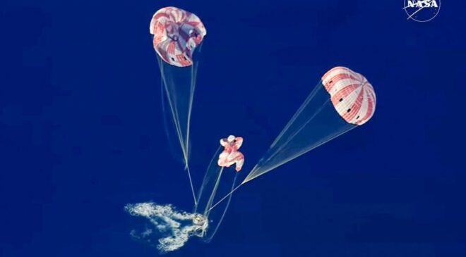 Cápsula tripulada de Artemis II ameriza frente a las costas de California, EE.UU