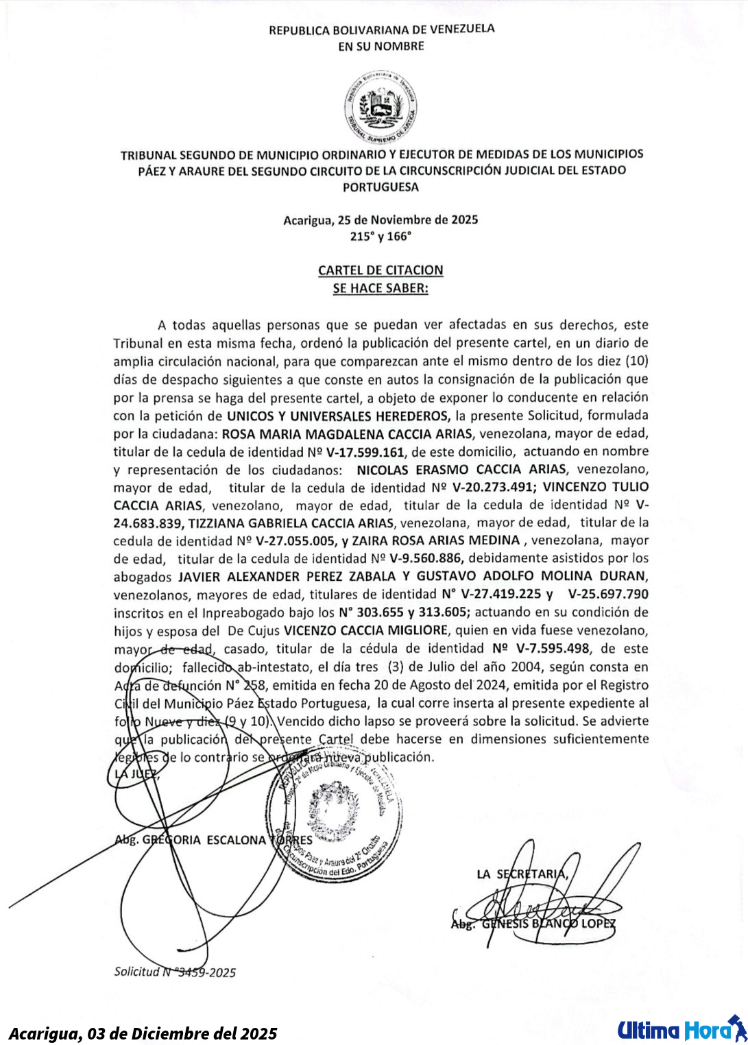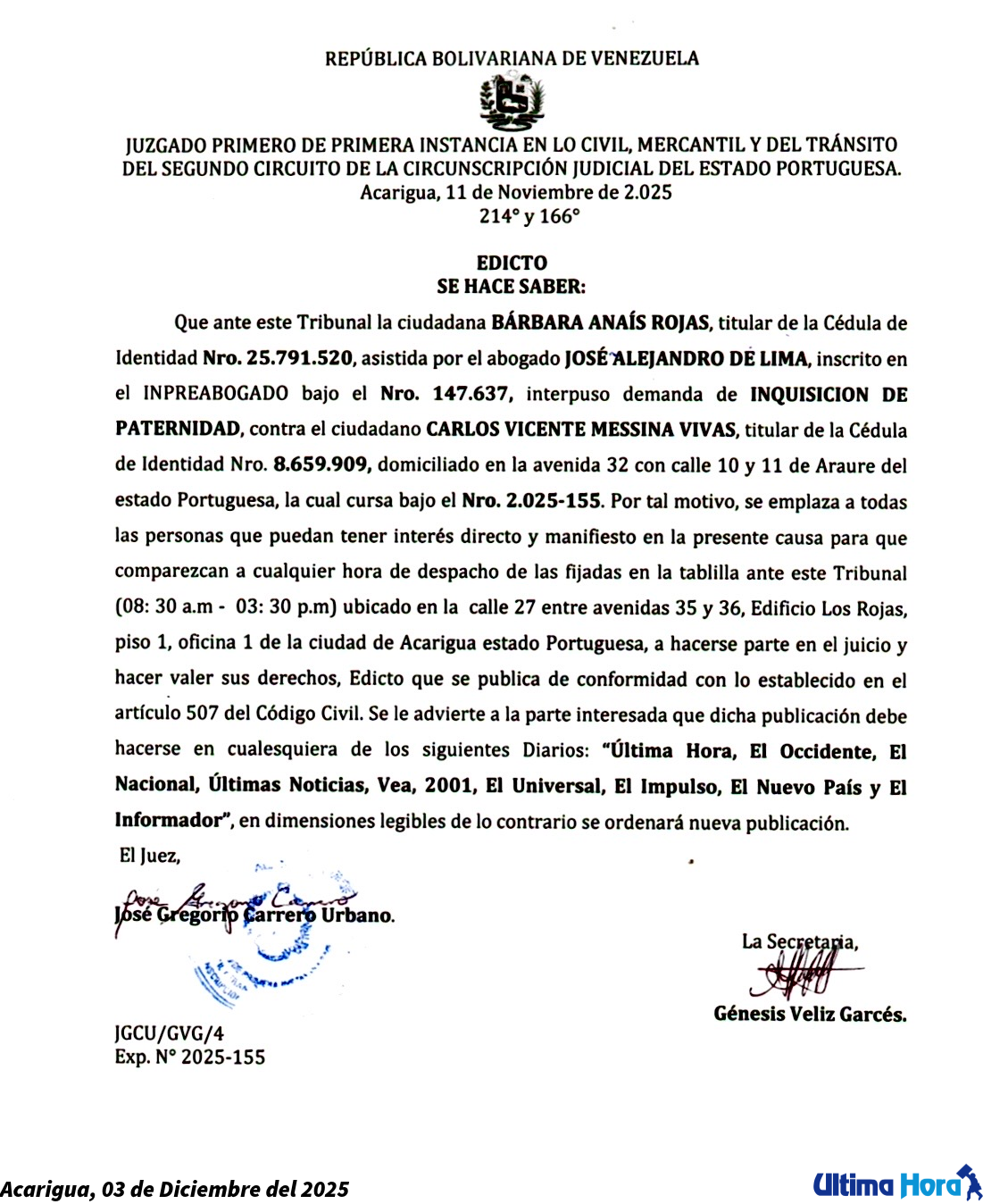 Más adelante, destacó que Orellana Mogollón presenta un antecedente penal ante el Cicpc Delegación Municipal Acarigua, por el delito de lesiones personales, según expediente № MP-32519-19, con fecha del 4 de febrero del año 2019.