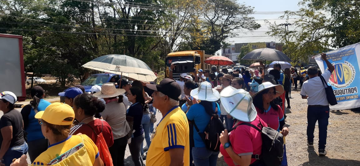 Pedro Galdón.- Este miércoles 22 de marzo, a 73 días desde el inicio de las manifestaciones de los empleados de la administración pública, trabajadores del sector educativo de las ciudades de Acarigua y de Araure protestaron en las proximidades de la Redoma de Araure bloqueando el paso vehicular en la Av. Vencedores, salida hacia Barquisimeto en horas de la mañana.