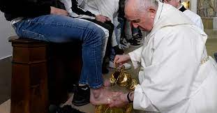 El papa Francisco lavó los pies de 12 jóvenes reclusos