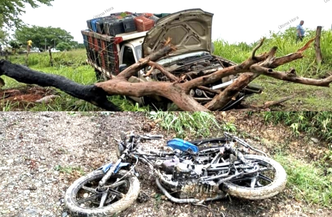 En el trayecto, la moto fue impactada por un camión Ford 350, 4X2, tipo baranda, color beige, año 2008, placas 24FFAP, cuyo conductor fue identificado Yoelvis Vizcaya, de 26 años.