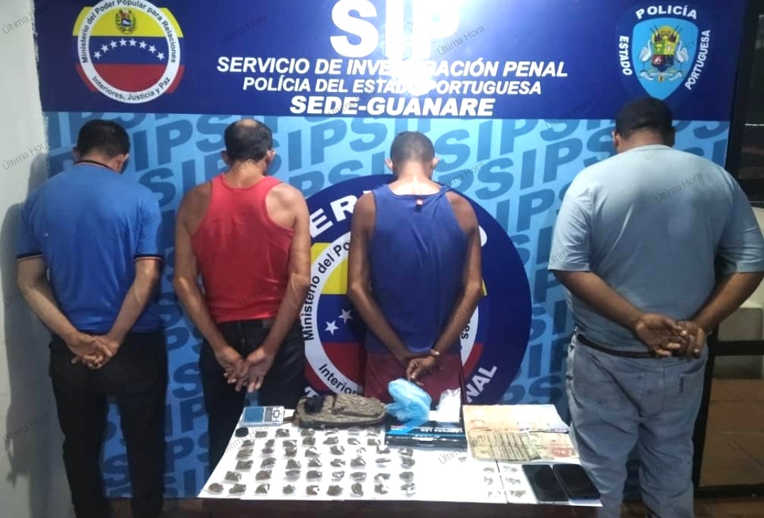 Miguel Enrique Villavicencio.- Cuatro individuos que presuntamente conformaban un grupo estructurado de delincuencia organizada dedicado al microtráfico de drogas, fueron capturados durante un operativo de seguridad que realizaron funcionarios destacados en el Servicio de Investigación Penal de la Policía Bolivariana del estado Portuguesa, este jueves en calle 20 con carrera 9 del barrio Cementerio de Guanare.