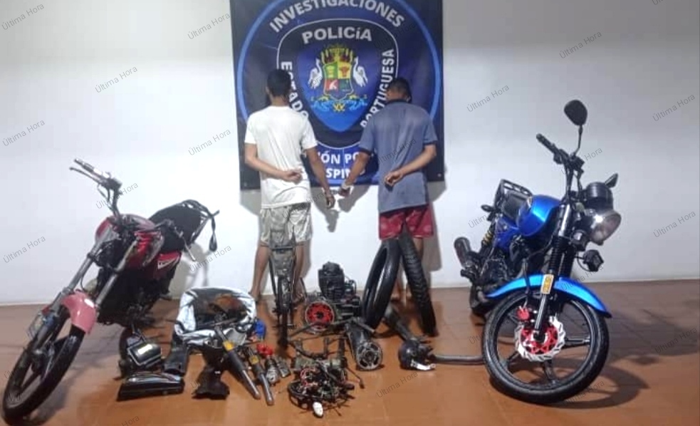 Miguel Enrique Villavicencio.- Dos sujetos fueron aprehendidos tras ser sorprendidos por una comisión policial cuando desvalijaban una moto robada.
