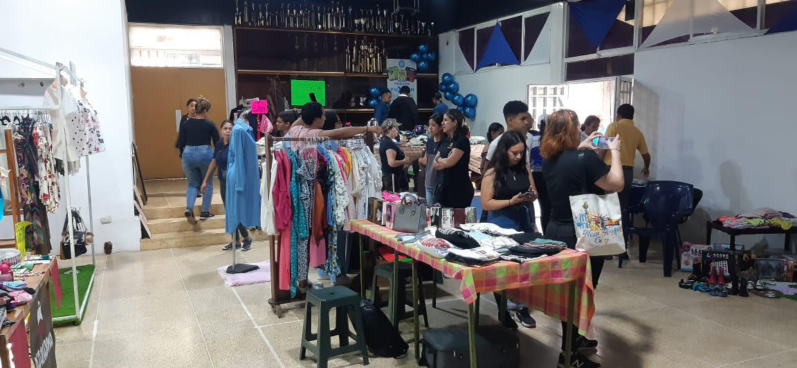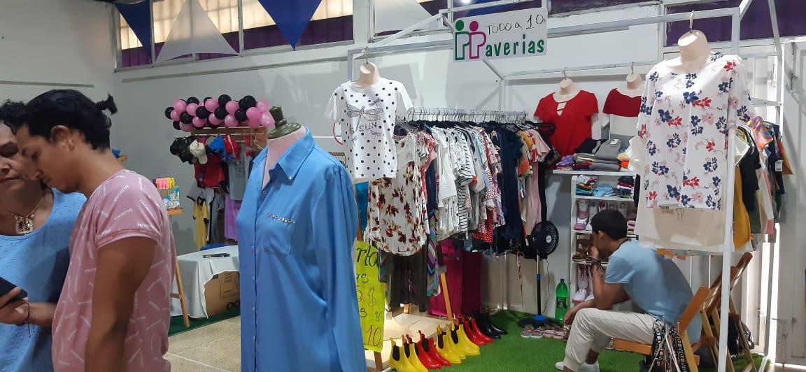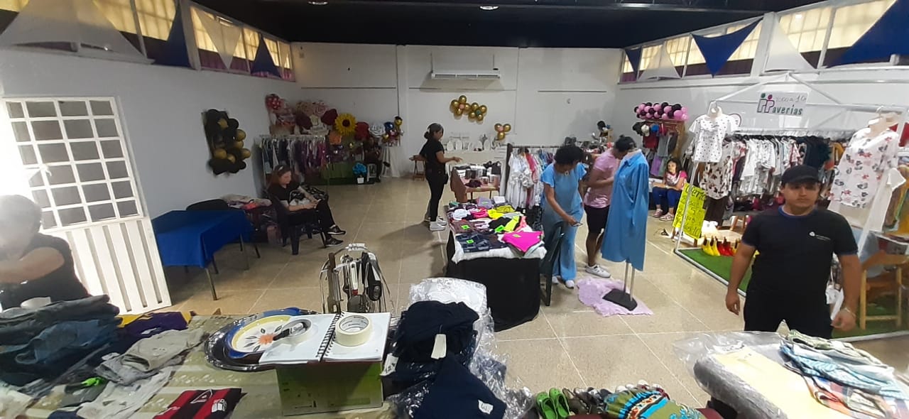 Indicó que el bazar está constituido por un total de 25 stands distribuidos en tres áreas según el tipo de mercancía y de ofertante, y armados por emprendedores en los ámbitos de «corte y costura», de venta de ropa nueva y/o usada, de enseres hogareños, de artículos de belleza, de partes electrónicas y de comida.