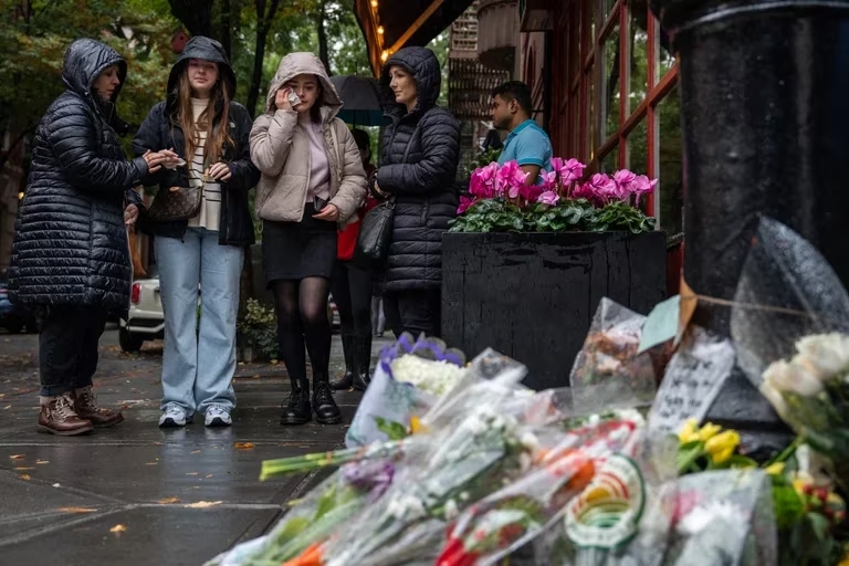 NUEVA YORK.- A los pies de la fachada del edificio neoyorquino donde vivían los protagonistas de la serie «Friends» este domingo hay flores y cartas en memoria del actor Matthew Perry, uno de los seis protagonistas del programa de televisión, que fue hallado sin vida ayer en el interior de un jacuzzi en su casa de Los Ángeles.