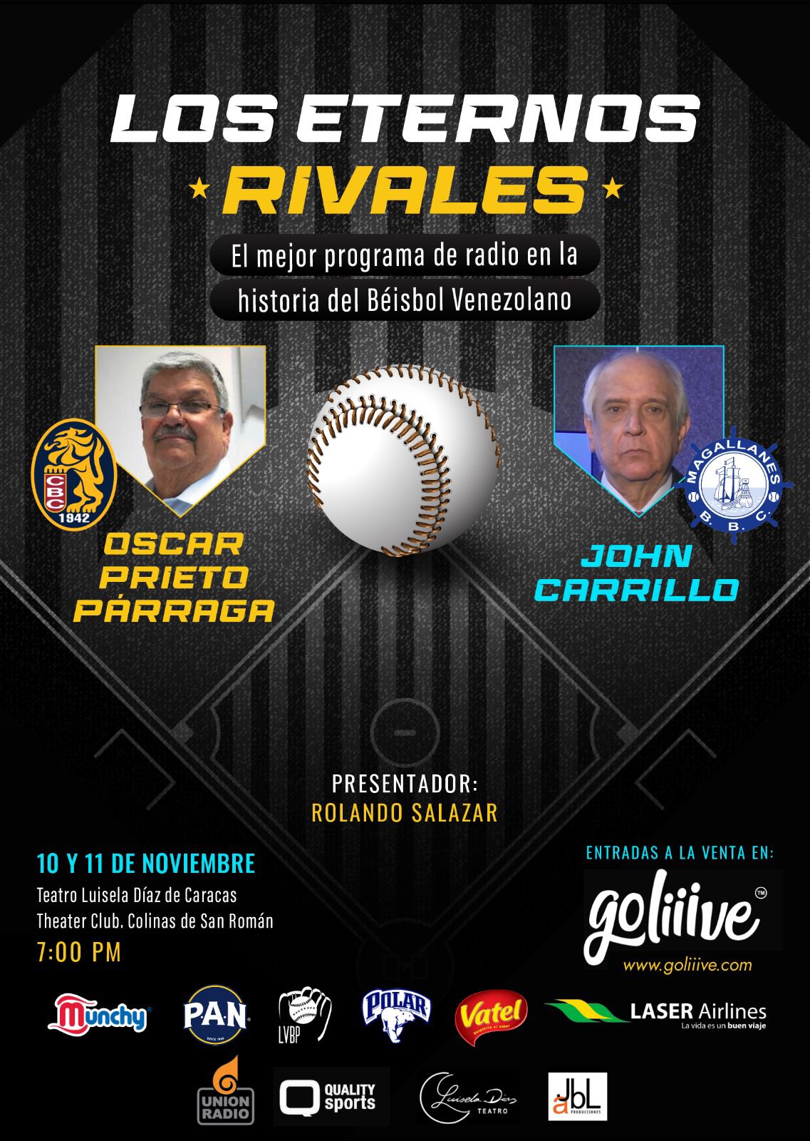 El comediante Rolando Salazar será el presentador de este espectáculo que irá del humor al amor por el béisbol a través de esos dos equipos fundamentales de la LVBP y por siempre rivales como son Los Leones del Caracas y Los Navegantes del Magallanes.