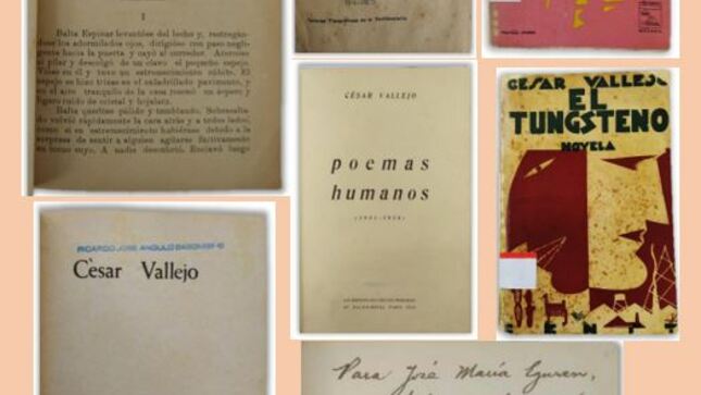 Las obras son ‘Los heraldos negros’ (Lima, 1918. Fondo Antiguo de la BNP); ‘Trilce’ (Lima, 1922. Fondo Antiguo de la BNP); ‘Escalas’ (Lima, 1923. Fondo Antiguo de la BNP), ‘Fabla salvaje’ (Lima, 1923. Colección Raúl Porras Barrenechea de la BNP), ‘El Tungsteno’ (Madrid, 1931. Colección Aurelio Miró Quesada de la BNP).