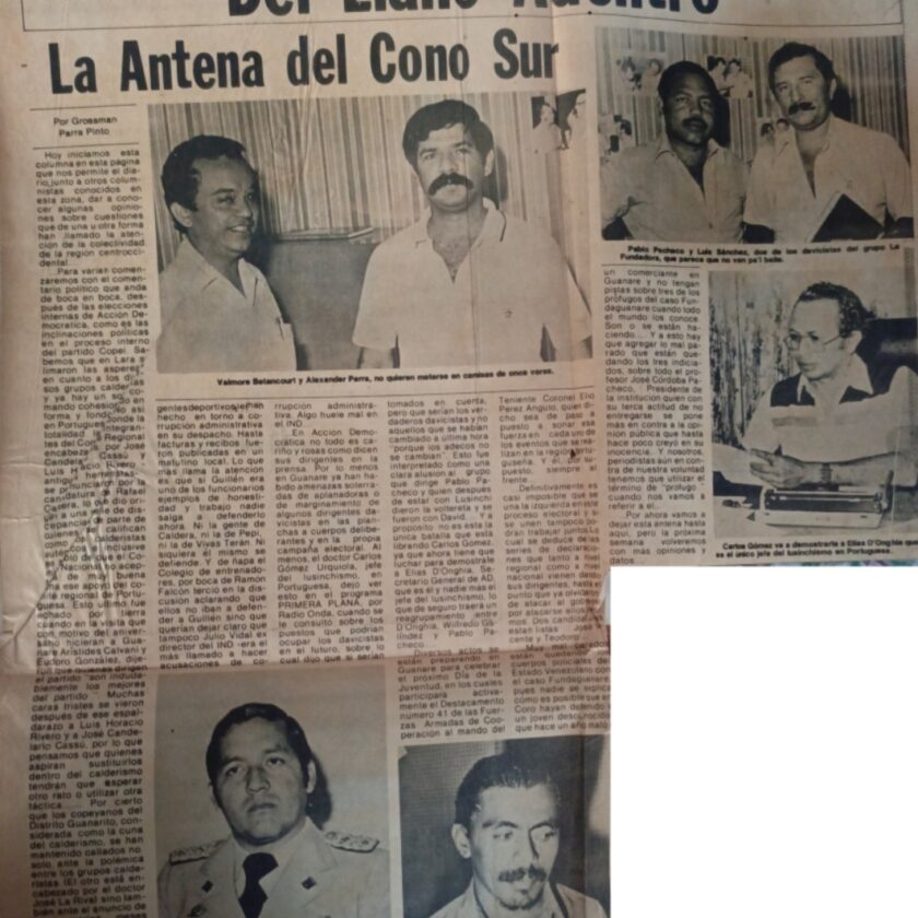REVISANDO MI ARCHIVO, como suelo hacerlo, me topé con una carpeta contentiva de mis Antenas, y allí observé que la primera de ellas fue publicada en una página completa en el barquisimetano diario “El Informador”, el ocho de febrero de 1982, posteriormente se publicó también en el araureño periódico “El Regional”, en el guanareño “Periódico de Occidente” y en el barinés “El Espacio”, llegándose a publicar simultáneamente en estos cuatro diarios. Sigan leyendo.