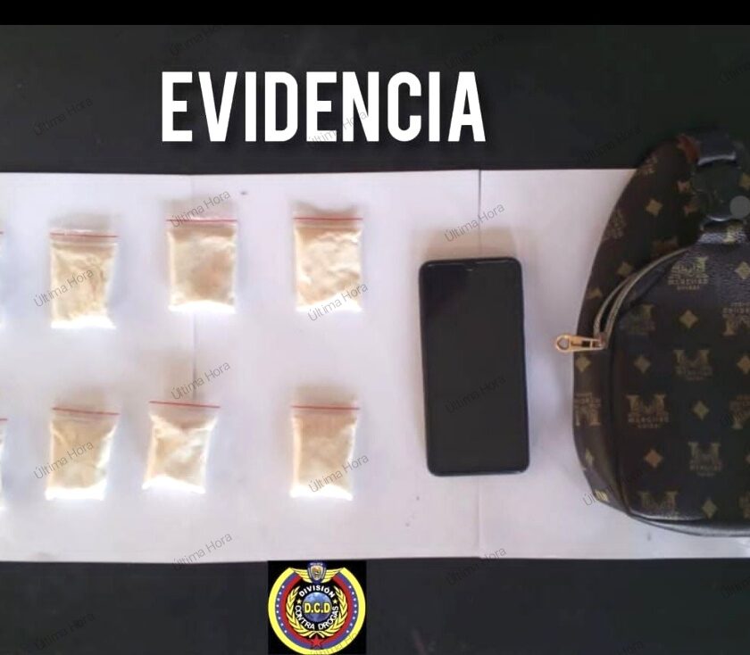 Luego, al practicarle una revisión se les encontró en su poder un bolso donde habían ocho envoltorios que contenían una sustancia de color blanco, al parecer cocaína, con un peso de 160 gramos.