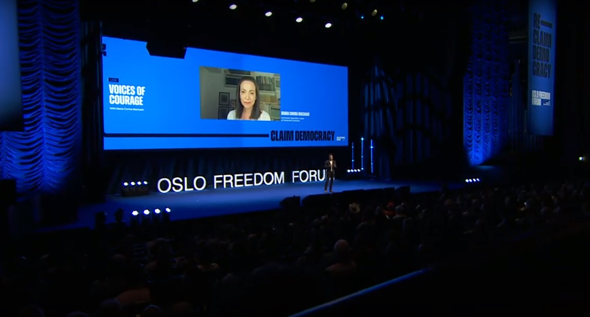 Caracas.- La coordinadora de la organización política Vente Venezuela, María Corina Machado, tuvo este lunes 3 de junio una participación en el Oslo Freedom Forum donde advirtió que, si el mandatario Nicolás Maduro es electo para un tercer periodo consecutivo, se puede registrar la «mayor ola migratoria jamás vista hasta el momento».