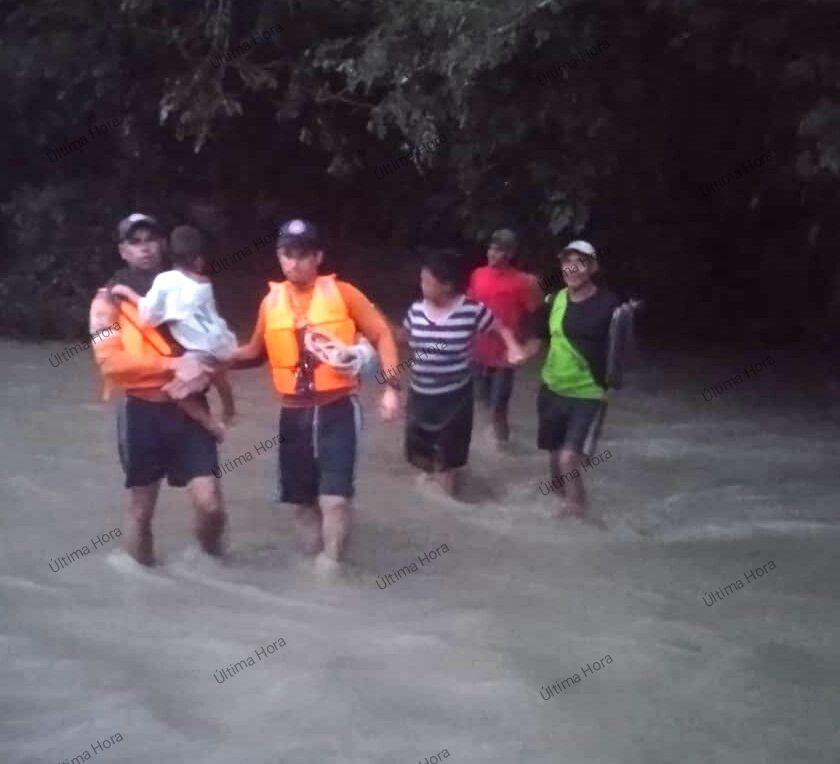 Se dijo que todos quedaron en medio del caudaloso río, siendo rescatados dentro del agua por la comisión de Protección Civil.