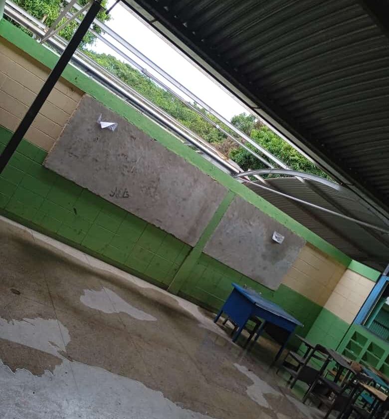 Con una pancarta amarrada a los portones de la entrada, los representantes denunciaron que además de la falta de vigilancia nocturna y la carencia de agua por el robo de las tuberías, también se ha sumado la ola de hurtos continuos del techo, de allí que varios salones y los pasillos han quedado a la intemperie por la acción criminal.