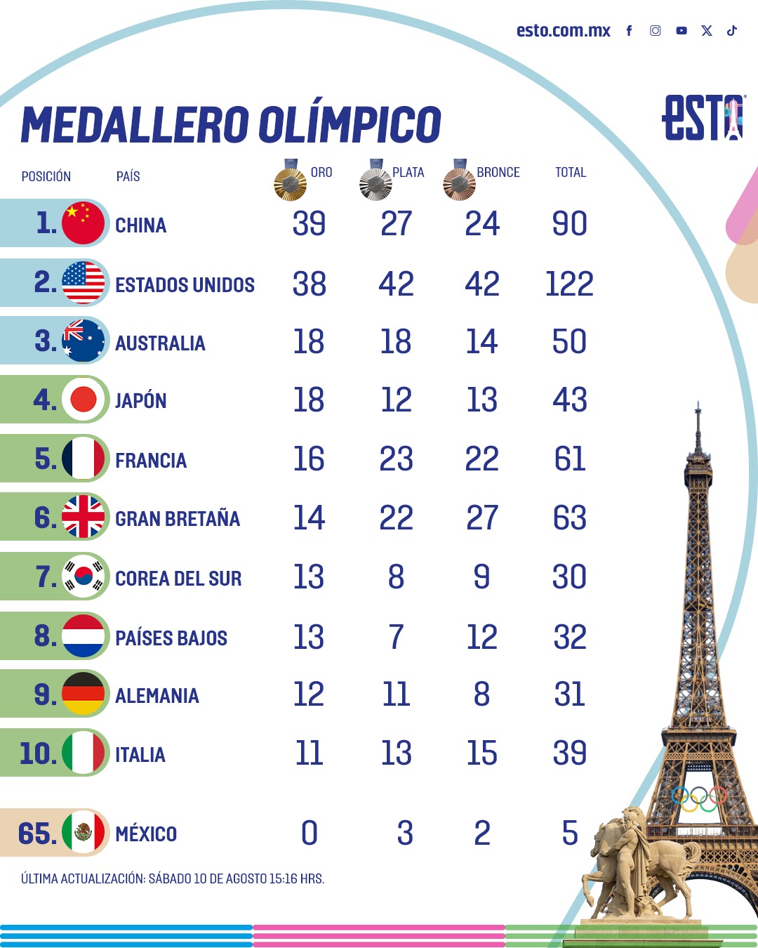 – Medallero de los Juegos Olímpicos de París 2024: