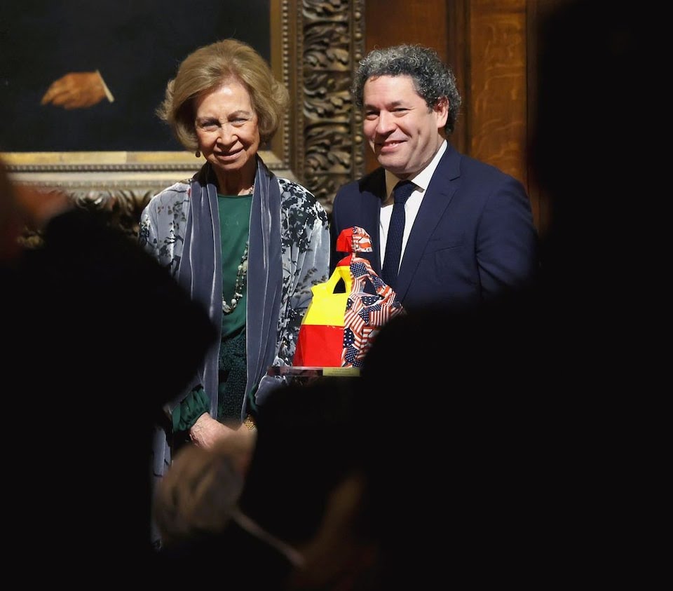 Con sus pensamientos en las víctimas del temporal, doña Sofía ha cruzado el charco con un objetivo doble. Por un lado, se celebra el 70º aniversario del instituto neoyorquino y, por otro, reconocer el trabajo y trayectoria del maestro venezolano Gustavo Dudamel. El Premio a la Excelencia que ha recogido de manos de la Reina valora su compromiso en ampliar el acceso a la música clásica a nuevas audiencias en todo el mundo, particularmente en comunidades desatendidas. También se le ha concedido por su trabajo filantrópico a través de la fundación que lleva su nombre y en la que está muy implicada su mujer, la actriz María Valverde.