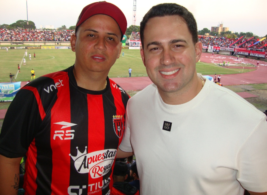 El joven burgomaestre le hace un llamado a la hinchada rojinegra para que el próximo sábado 14 llenen el estadio en el juego donde los llaneros reciben a La Academia de Anzoátegui. “Este conjunto representa una gran pasión y son orgullo para los portugueseños. Un ex alcalde como el doctor Dimas Salcedo fue uno de sus fundadores y siempre está aupando a estos guerreros. Vamos a apoyar de nuevo al elenco cinco estrellas y disfrutemos de un espectáculo excelente. Vamos por la sexta bajo el mando de un gran entrenador como Leonardo González”, cerró diciendo. En la gráfica junto al empresario Vito Rechimurzzo.